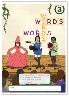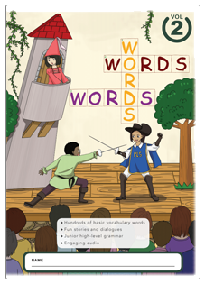 AとBの2冊組で、Aでは約60の名詞や色、Bではすでに習った名詞の復習に加え、新しい40の名詞と20の動詞を学びます。Listen Up! で学習する言葉は、他の教材でも繰り返し学習していきます。